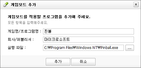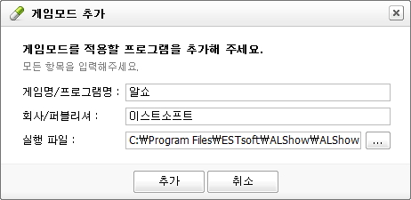알약에서 기본적으로 지원되는 게임 이외에 사용자가 직접 알약 게임모드를 적용할 게임을 추가하실 수 있습니다.
