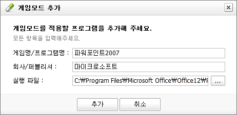 MS 파워포인트 파일을 사용자가 추가로 등록했을 경우 파워포인트 파일이 실행되었을 때 게임모드가 적용됩니다.