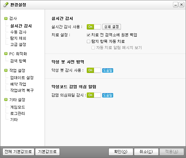 악성봇 사전방역 설정 방법