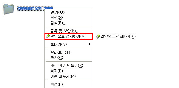 마우스 우클릭 메뉴를 이용해 선택한 폴더/파일을 검사하는 기능입니다.