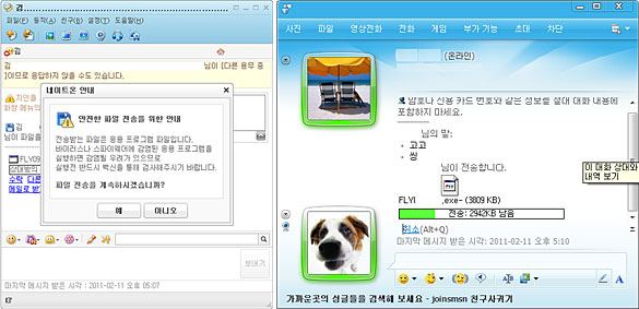 보안 취약점 이외에도 이메일이나 메신저를 통해 출처가 불분명한 파일을 사용자가 직접 실행하도록 전달되거나 트위터나 페이스북, 미투데이 같은 SNS를 통해 악성코드에 감염되는 경우가 많이 보고되고 있습니다.